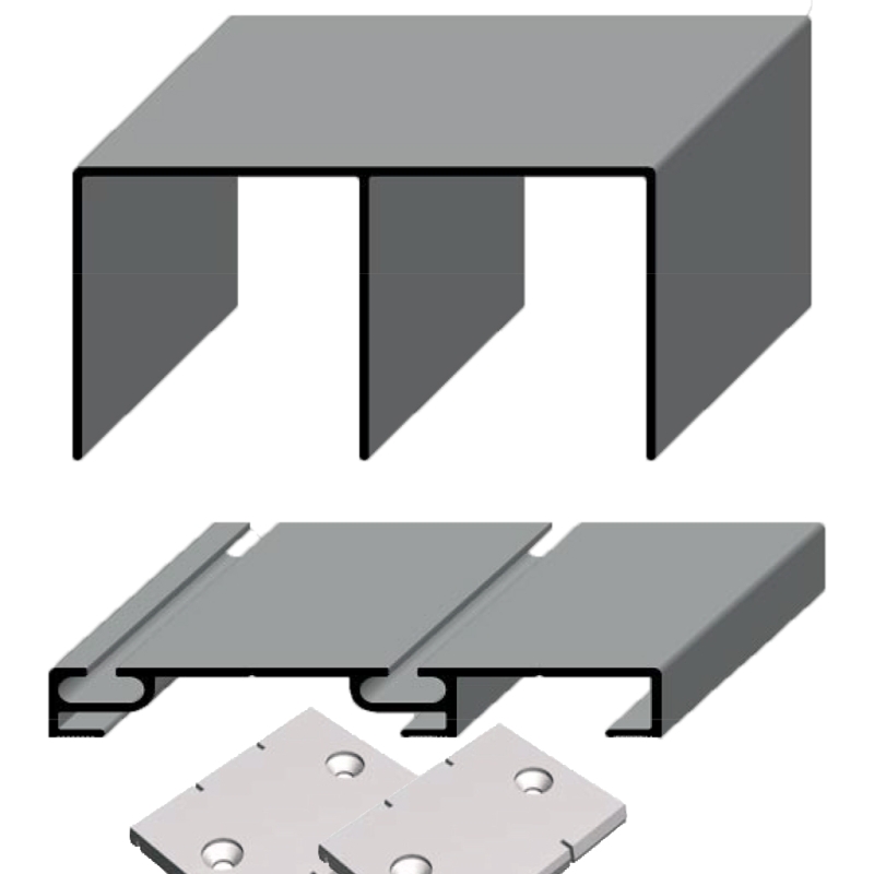 Conjunto de carriles plata mate de 75mm de ancho, superior e inferior (alto 13mm) para ruedas con diente.