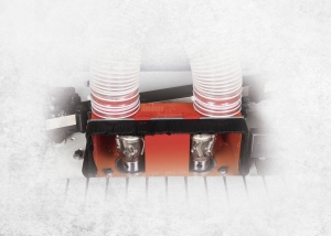 - Grupo rectificador con 2 cabezales de diamante. Permite repasar el canto del tablero eliminando las posibles irregularidades antes del encolado.