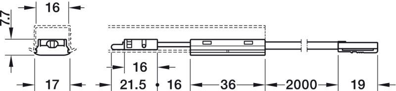 Dimmer para instalación en perfil de aluminio de 18mm de ancho para tiras led de 8mm, con clip y alimentación Loox5