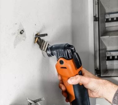 La MultiTool de gran potencia para una rápida velocidad de corte (en obras en interiores y reformas), con hoja de sierra bimetálica para madera, metal y plásticos.
