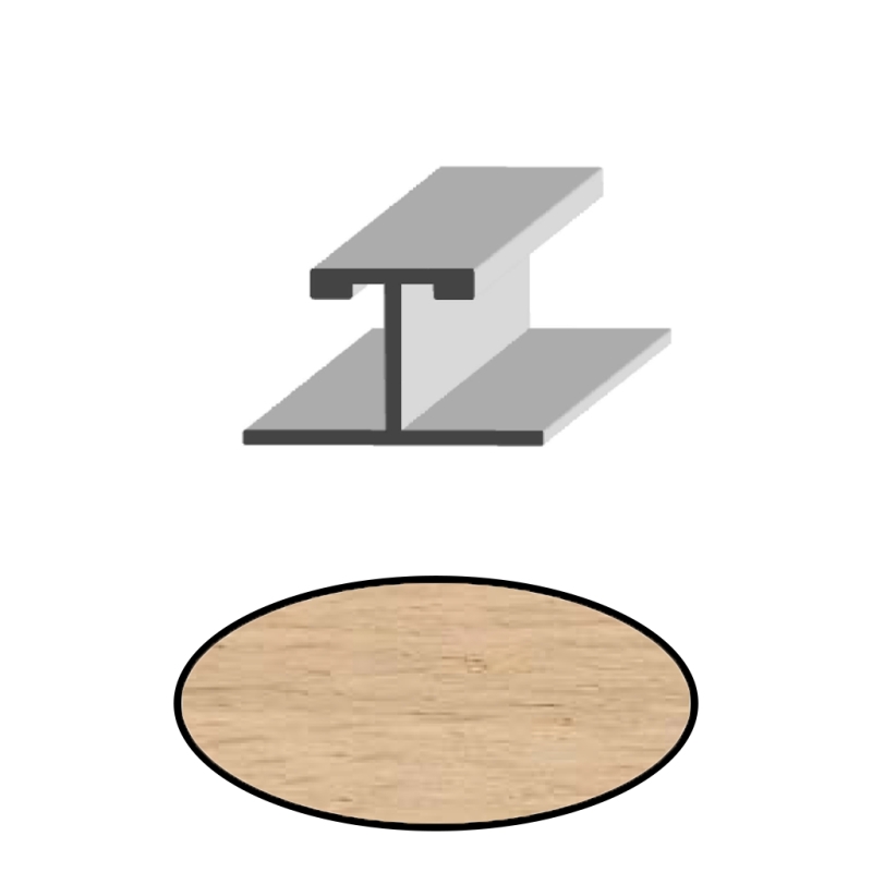 Perfil doble U de aluminio acabado en rechaoado de roble, para tablero de 10mm.