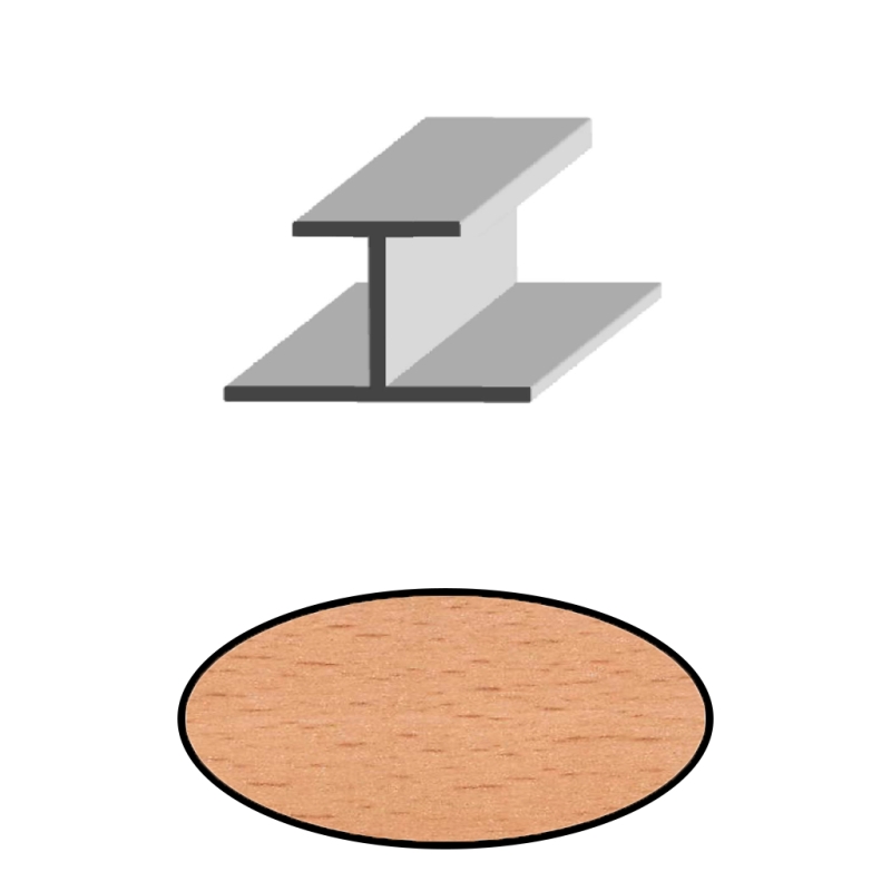 Perfil doble U de aluminio acabado en melamina de haya, para tablero de 16mm.