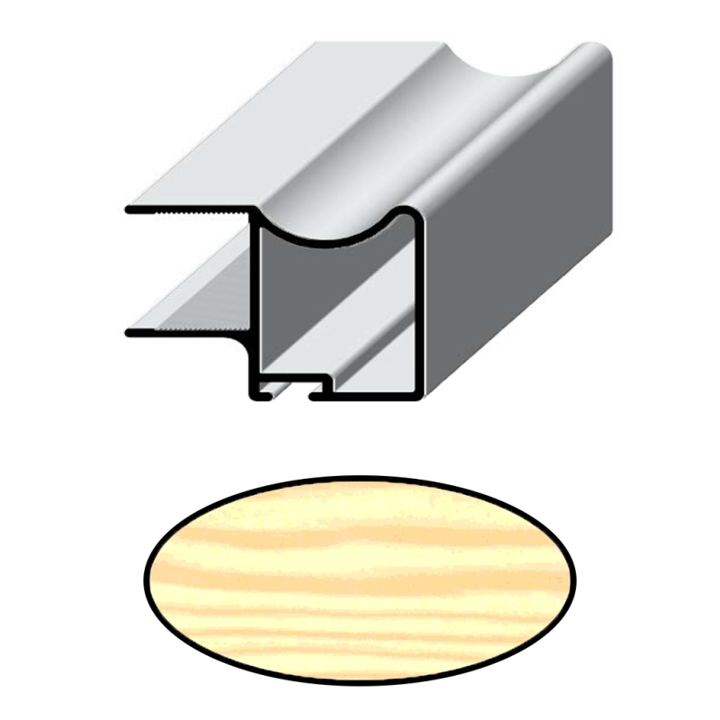 Tirador de aluminio en rechapado de pino para tablero de 16mm.
