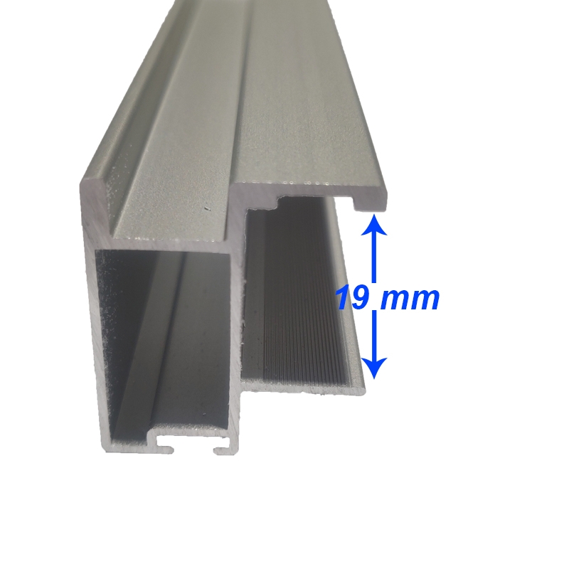 Tirador minimalista de aluminio en acabado plata mate, para tablero de 19mm.