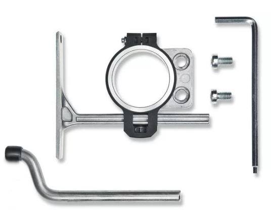 Tope de profundidad para todas las hojas de sierra. Para un trabajo exacto también en profundidad. Protección efectiva de la hoja de sierra y la pieza de trabajo. Contenido: 1 adaptador para la fijación en la máquina. 1 tope de profundidad, 1 carro de guía ajustable en profundidad.
