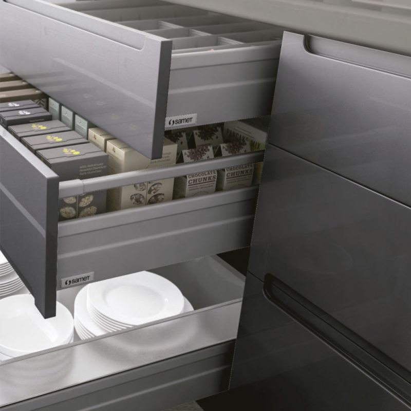 Su diseño estético y elegante maximiza el espacio disponible en los cajones.