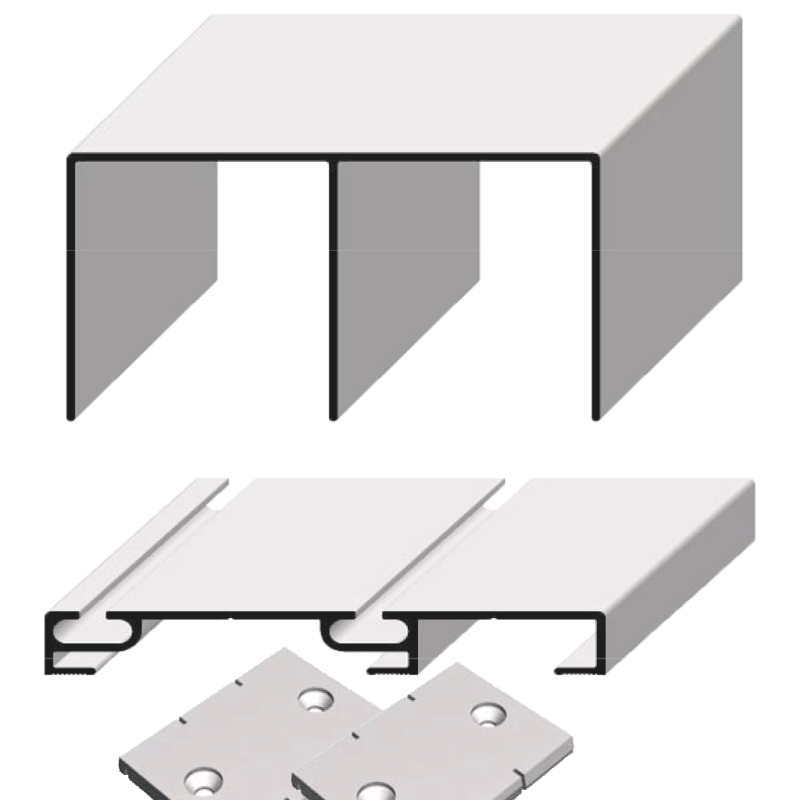 Conjunto de carriles lacados en blanco de 75mm de ancho, superior e inferior (alto 13mm) para ruedas con diente.