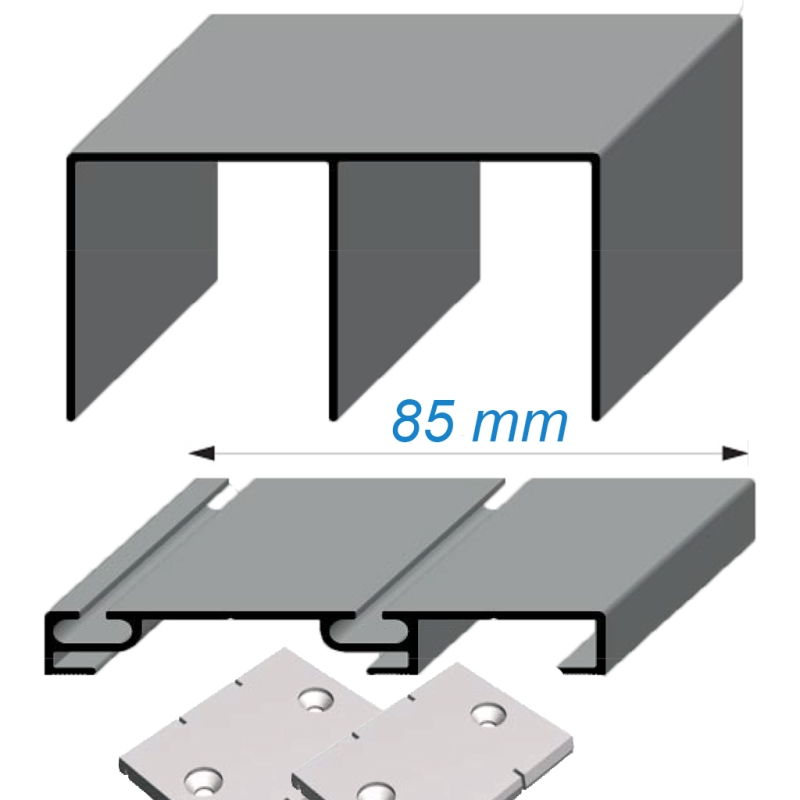 Conjunto de carriles plata mate de 85mm de ancho, superior e inferior (alto 13mm) para ruedas con diente.
