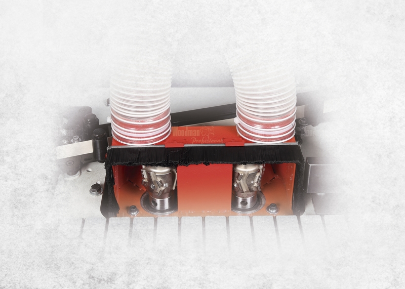 - Grupo perfilador con fresas a 12.000 r.p.m., consiguiendo un acabado excelente en cualquier tipo de material. Regulación rápida y fácil con sistema de visualizadores numéricos para las medidas.