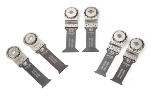 6 hojas de sierra de recambio E-Cut extralargas para profundidades de penetración grandes y para trabajar de forma efectiva en madera y metal. Adecuadas para todas las FEIN MultiTools con alojamiento StarlockMax, así como para todo el resto de MultiTools usuales con alojamiento StarlockMax. El set ofrece un atractivo ahorro en comparación con la compra individual. Contenido: 2 hojas de sierra Long Life E-Cut de cada (78 x 32 mm, 78 x 42 mm), 2 hojas de sierra Long Life E-Cut (90 x 32 mm).