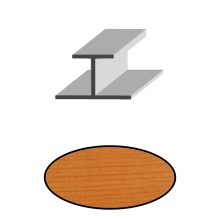 Perfil doble U de aluminio acabado en melamina de cerezo, para tablero de 16mm.