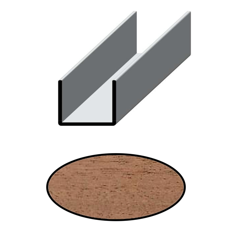 Perfil inferior U de alumino acabado en rechapado de sapeli, para tablero de 16mm.