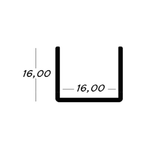 Perfil inferior U de alumino acabado en rechapado de wenge, para tablero de 16mm.